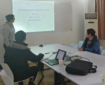 报告中,张俊副教授为大家介绍了Reed-Solomon码的基本概念以及研究现状。之后给出一类twisted generalized Reed-Solomon码并着重讲解这类码的相关性质,确定了它的极小距离和对偶码,并给出了这类码在特殊情况下自对偶的充分必要条件等。报告结束后,张俊副教授耐心解答了各位员工提出的问题。本次报告内容丰富充实,让大家对代数编码的理论及发展有了更深刻的了解。