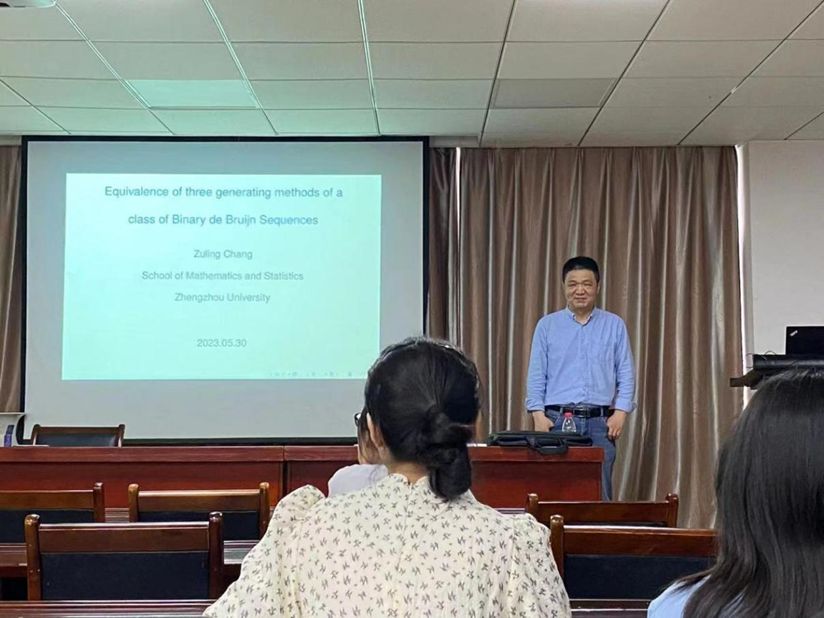 2023年5月30日上午,郑州大学常祖领教授应邀为公司相关专业的教师与研究生在数统公司201会议室作了题为《一类de Bruijn序列的三种生成方法的等价性分析》的学术报告。