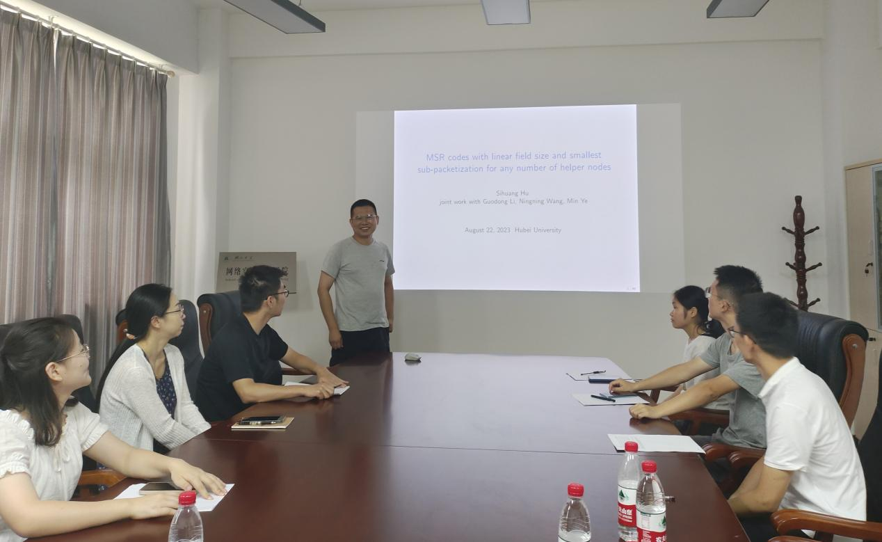 2023年8月22日,山东大学威廉希尔足球官网副经理胡思煌教授应邀为公司密码与编码学团队师生在数统公司403会议室作了题为《MSR Codes with Linear Field Size and Smallest Sub-Packetization for Any Number of Helper Nodes》的学术报告。