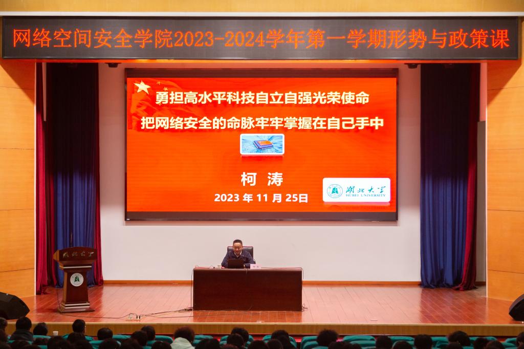 公司党委常委柯涛教授以《勇担高水平科技自立自强光荣使命,把网络安全的命脉牢牢掌握在自己手中》为题为公司师生讲授形势政策课。报告从科技形势与科技使命、有组织的科研与科技自立自强、教育科技人才“三位一体”融合发展、威廉希尔足球官网的科技创新发展、威廉希尔足球官网的建设与思考等五个方面进行深入分析。他强调,要发挥好高校是教育、科技、人才汇聚地的优势,“三位一体”系统推进网络空间安全团队建设,助力把网络安全的命脉牢牢掌握在自己手中。同时,勉励全院师生要以国家安全为初心、以立德树人为根本、以服务社会为宗旨、以学科交叉为动力,抓住时代机遇、政策机遇,敢于迎难而上、勇担重大使命!