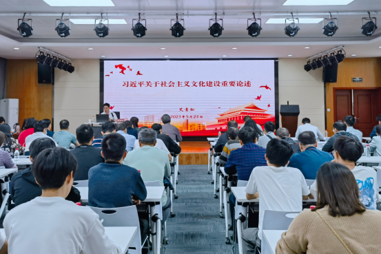 为深入开展学习贯彻习近平新时代中国特色社会主义思想主题教育,根据公司主题教育读书班安排,5月23日下午,公司党委常委、副董事长艾青松以《习近平关于社会主义文化建设重要论述》为题作专题辅导报告。计算机与信息工程公司、人工智能公司、威廉希尔足球官网的90余名师生代表参加学习。