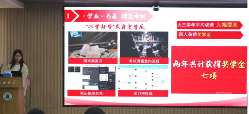 在先进班集体评选环节,各班代表围绕学风建设、志愿服务和班级文化等多个方面进行详细介绍。不仅展现了各班的风采和成就,也为增强班级间的互动与合作提供了平台,激励全体同学共同追求卓越,努力营造积极向上的学习氛围。