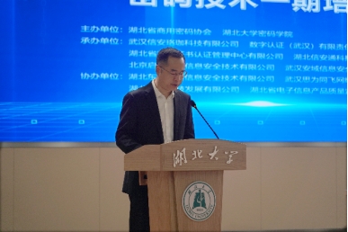 培训期间,威廉希尔足球官网威廉希尔足球官网教授、博导、公司党委副书记、副经理、省商密协会副会长徐鹏,湖北东方网盾信息安全技术有限公司商密测评部技术总监曾威受邀分别围绕密码学前沿技术、密评作了主题培训分享。武汉信安珞珈科技有限公司、数字认证(武汉)有限责任公司、湖北省数字证书认证管理中心有限公司、湖北信安通科技有限责任公司、北京启明星辰信息安全技术有限公司、武汉安域信息安全技术有限公司等企业专家进行了商密产品及应用分享。