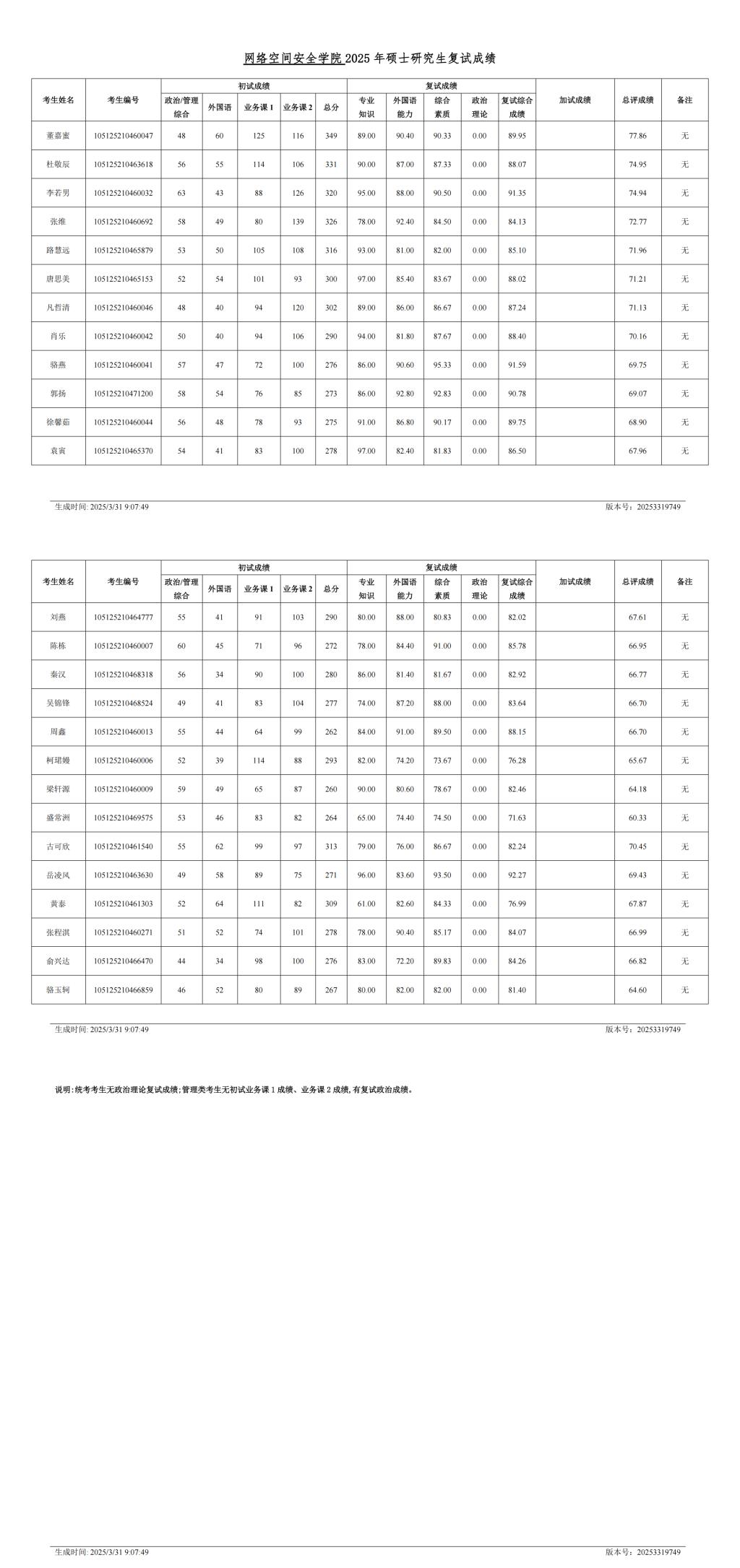 威廉希尔足球官网2025年硕士研究生复试成绩(一志愿)