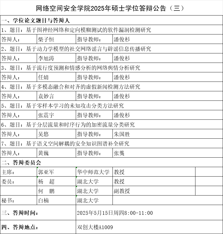 威廉希尔足球官网2025年硕士学位答辩公告(三)